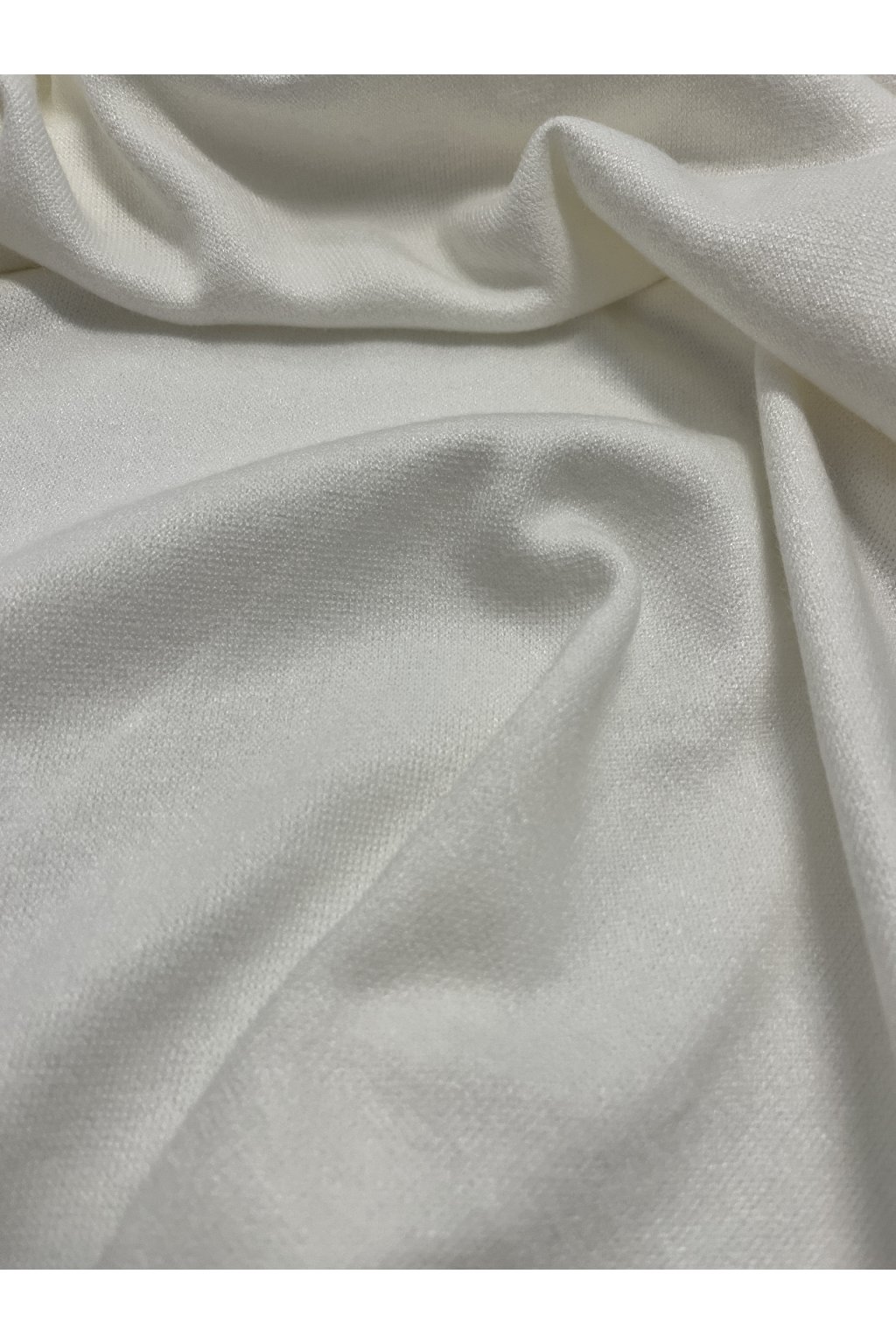 Nejpříjemnější materiál všech dob! Nádherná jemná svetrovina v barvě krémově bílá s velkou gramáží. Velmi jemný, elastický materiál, příjemný na dotyk a díky kvalitnímu složení je velice odolný proti zatrhnutí. Ideální pro rolák, triko s dlouhým rukávem, šaty, kalhoty, svetrovou soupravu, ... v kreativitě se meze nekladou!