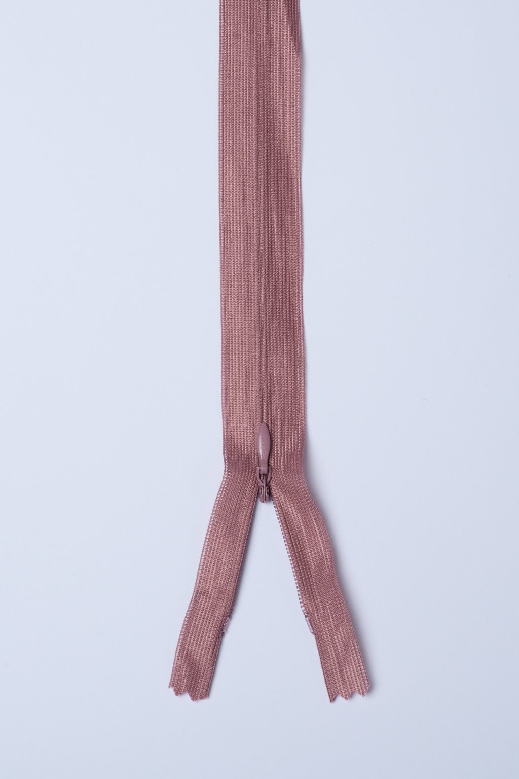 Pudrový skrytý nedělitelný zip.